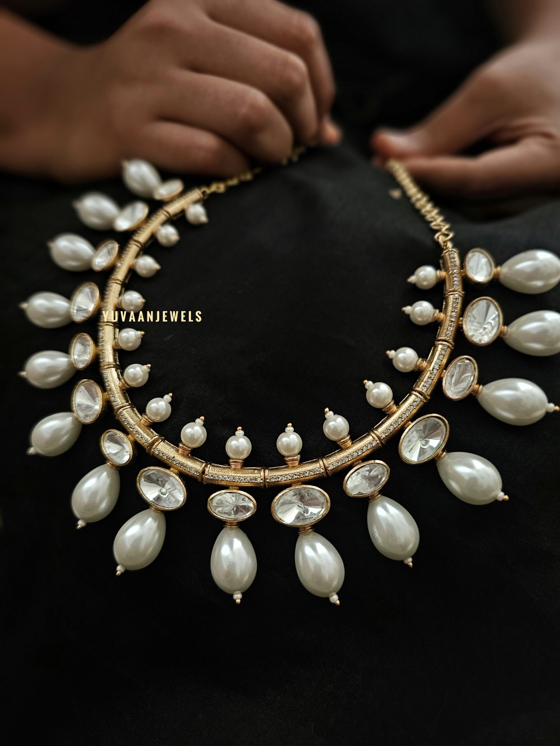 Lagoona polki and pearl necklace