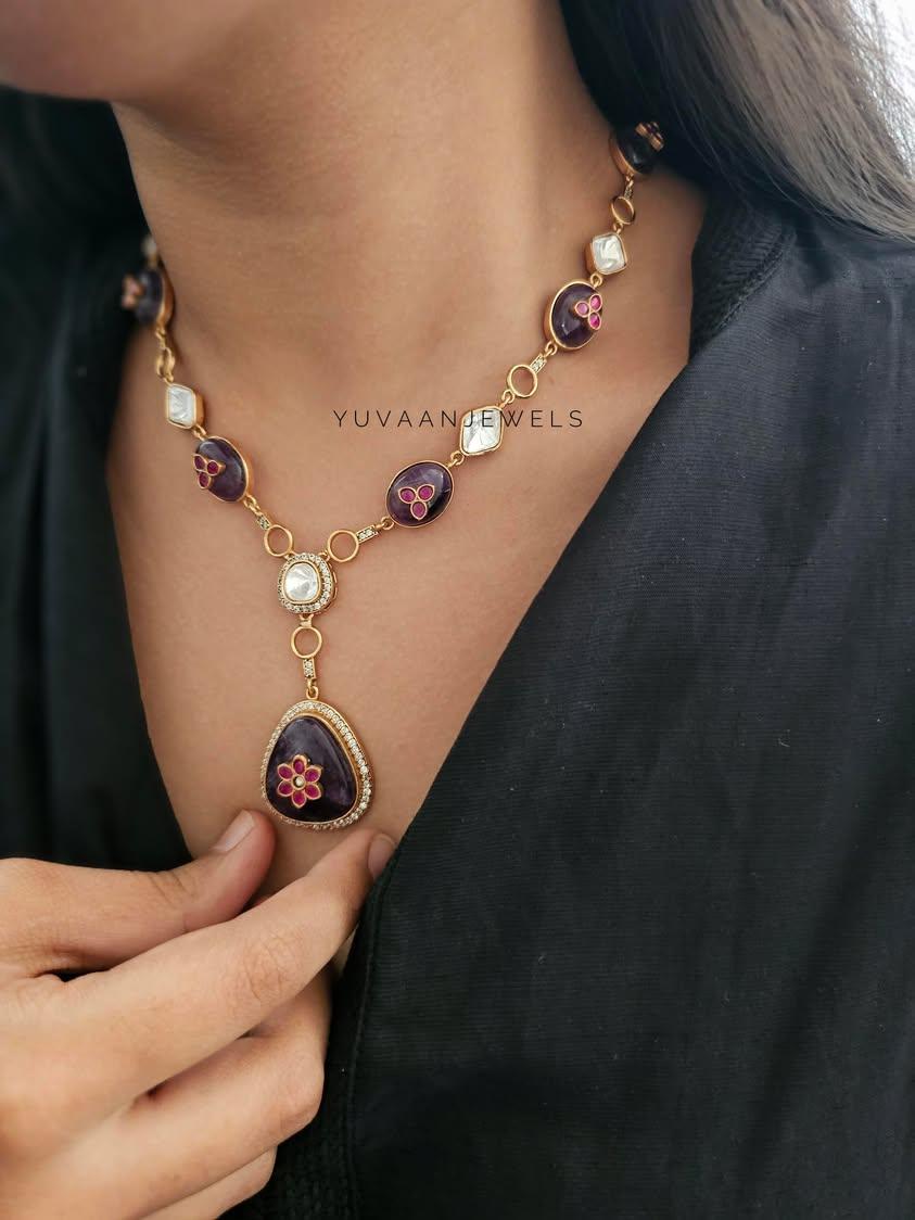 Meet long natural stone necklace