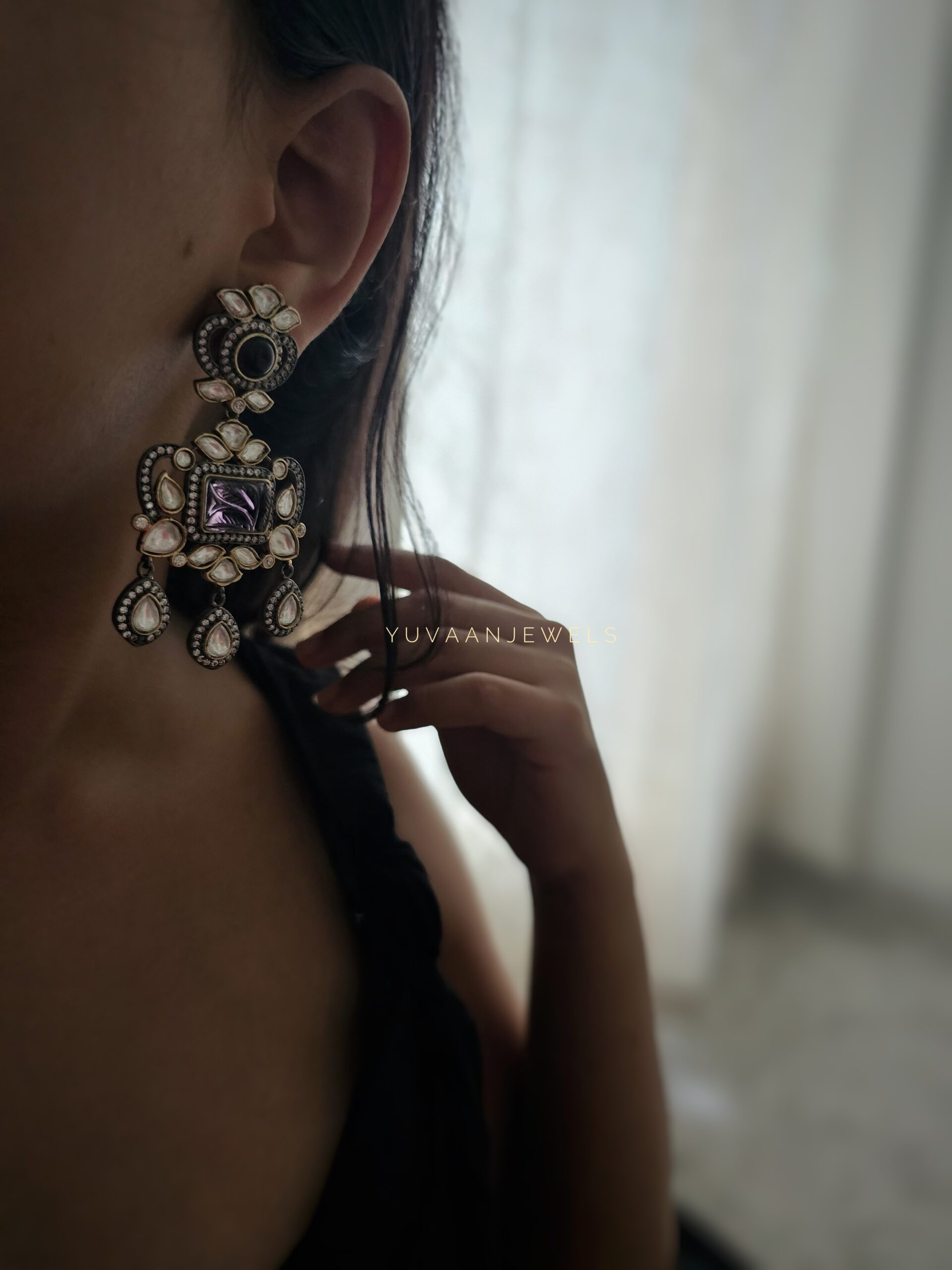Palak Quartz stone & polki earings