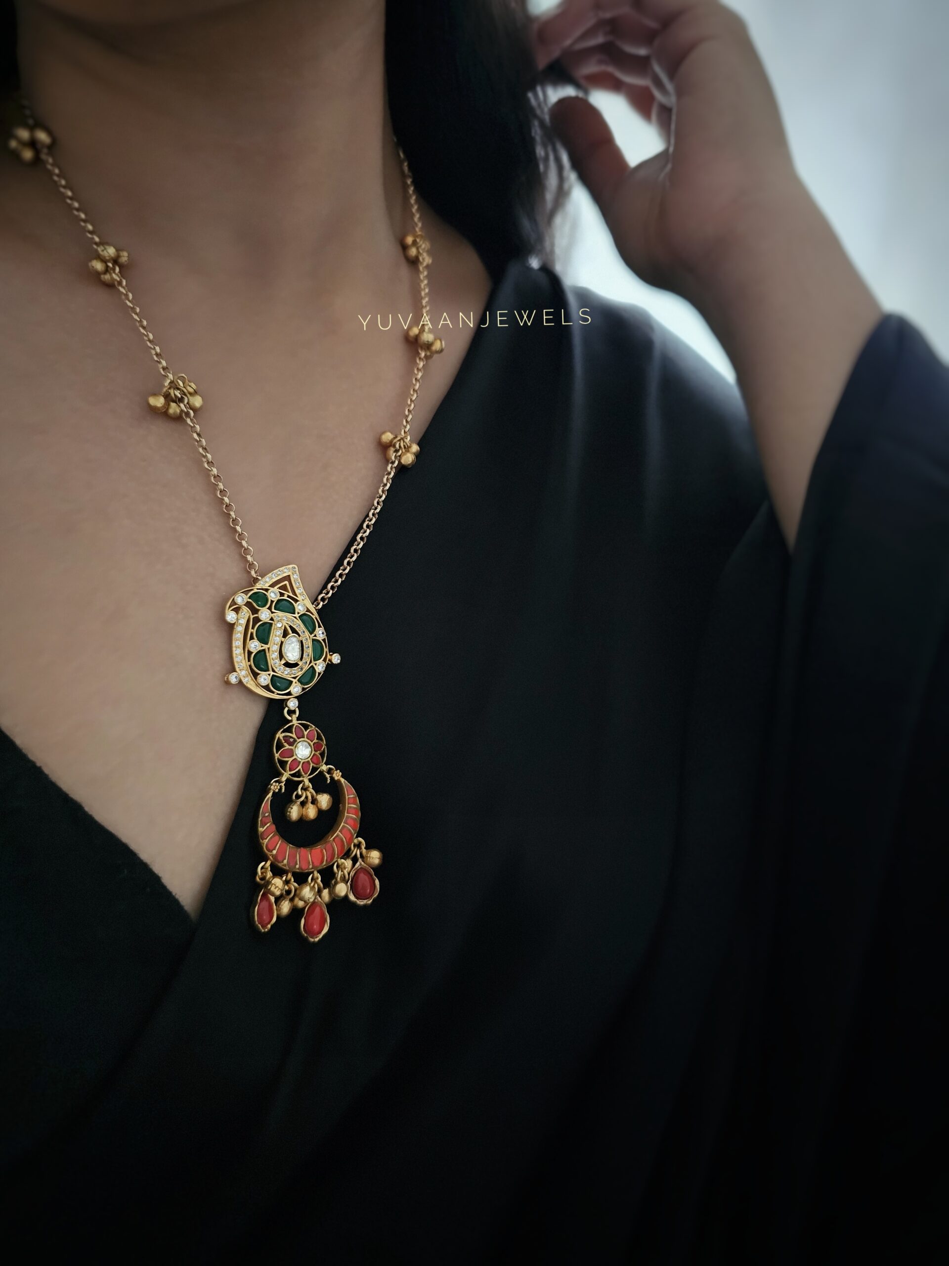 Pashmina Long polki necklace