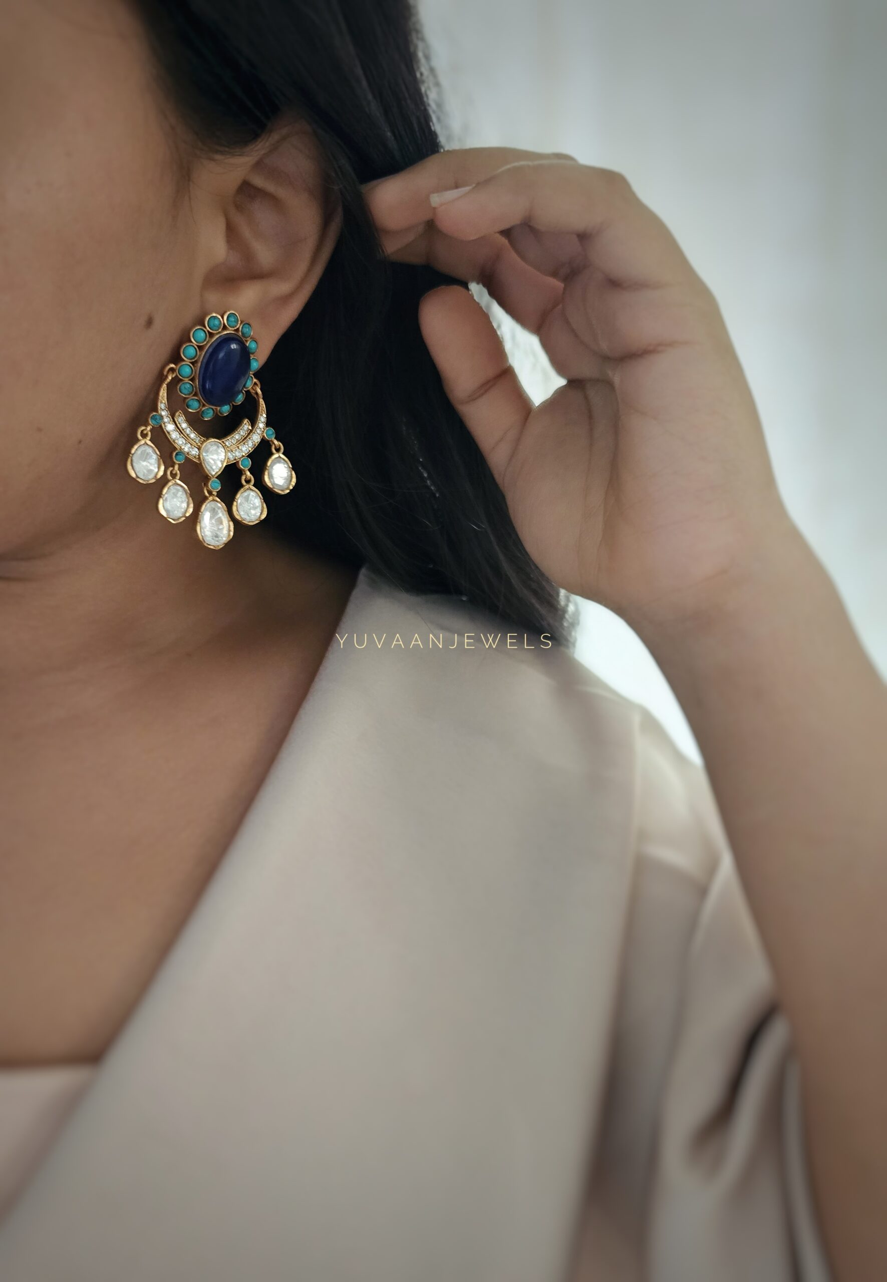 Roshni semi-precious stone & polki earings
